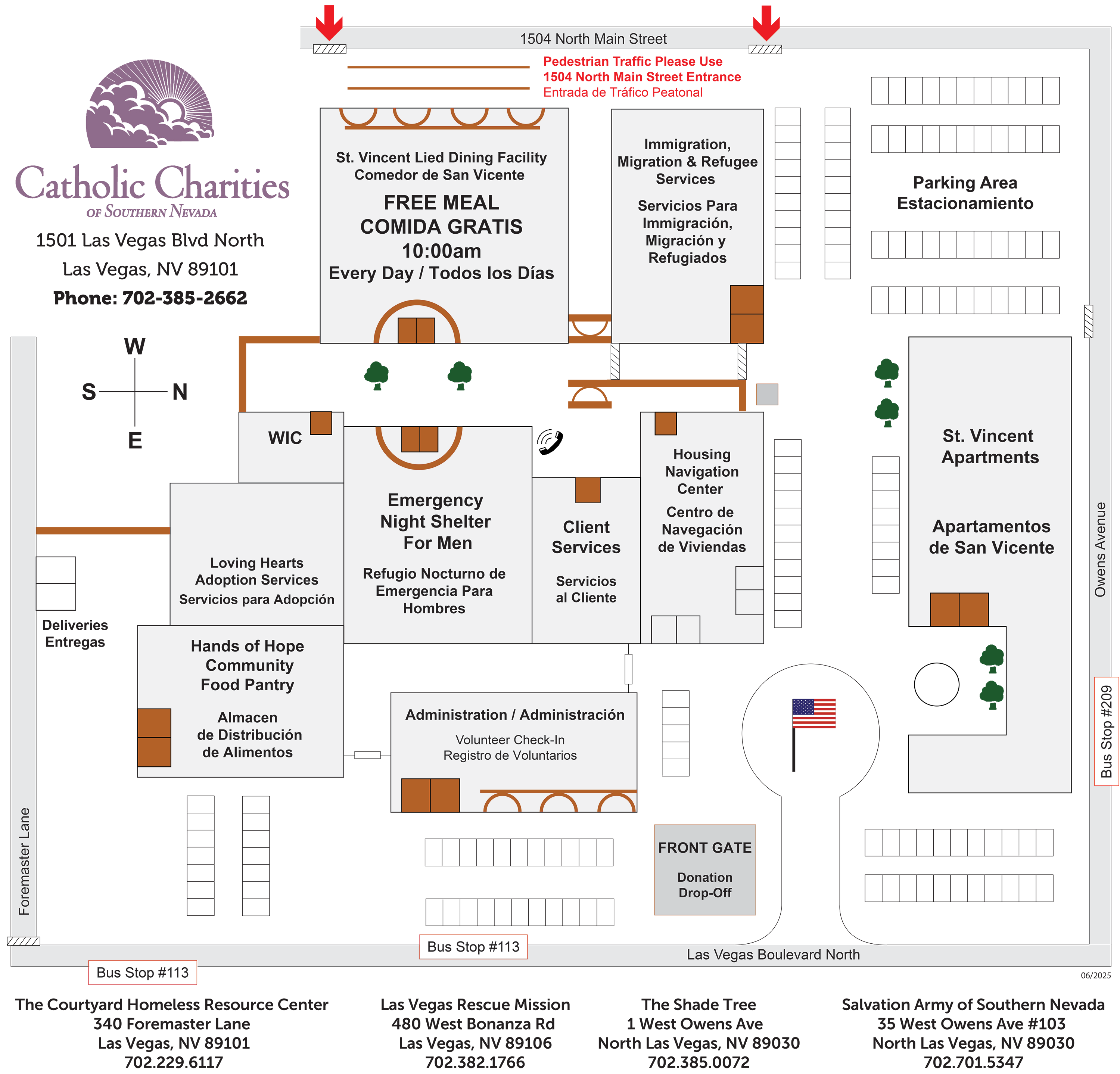 We also operate a Men's Emergency Shelter every night of the year check-in starts at 2:30 p.m. We are located at 1501 Las Vegas Blvd North, at the cross street of Owens.